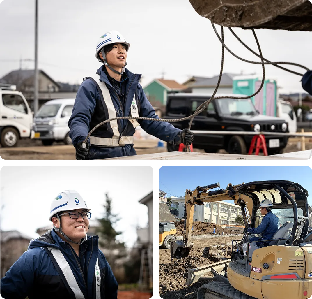 仕事の流れや道具の名前を覚えるのは正直大変でしたが、何もなかった場所に家が完成していくのを見ると、自分が関われた実感があり、大きなやりがいを感じています。