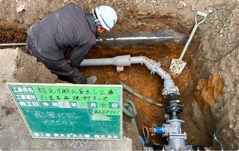 皆さんが毎日当たり前に蛇口からきれいな水を使えるよう、地面を掘り起こして専用の管を接続し、再び道路をきれいに埋め戻します。