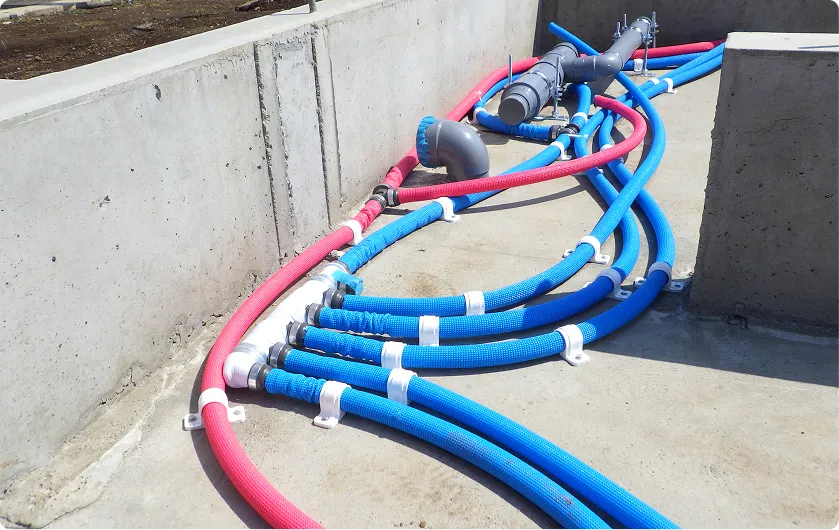 道路になる場所の下に、大きな排水管や水道管を設置します。