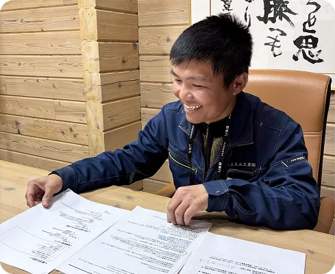 社長の人柄もあり、チームで助け合う空気があるので、困ったことも相談しやすい環境です。将来は、現場の方や協力会社の方たちから頼られる存在になりたいと思っています。